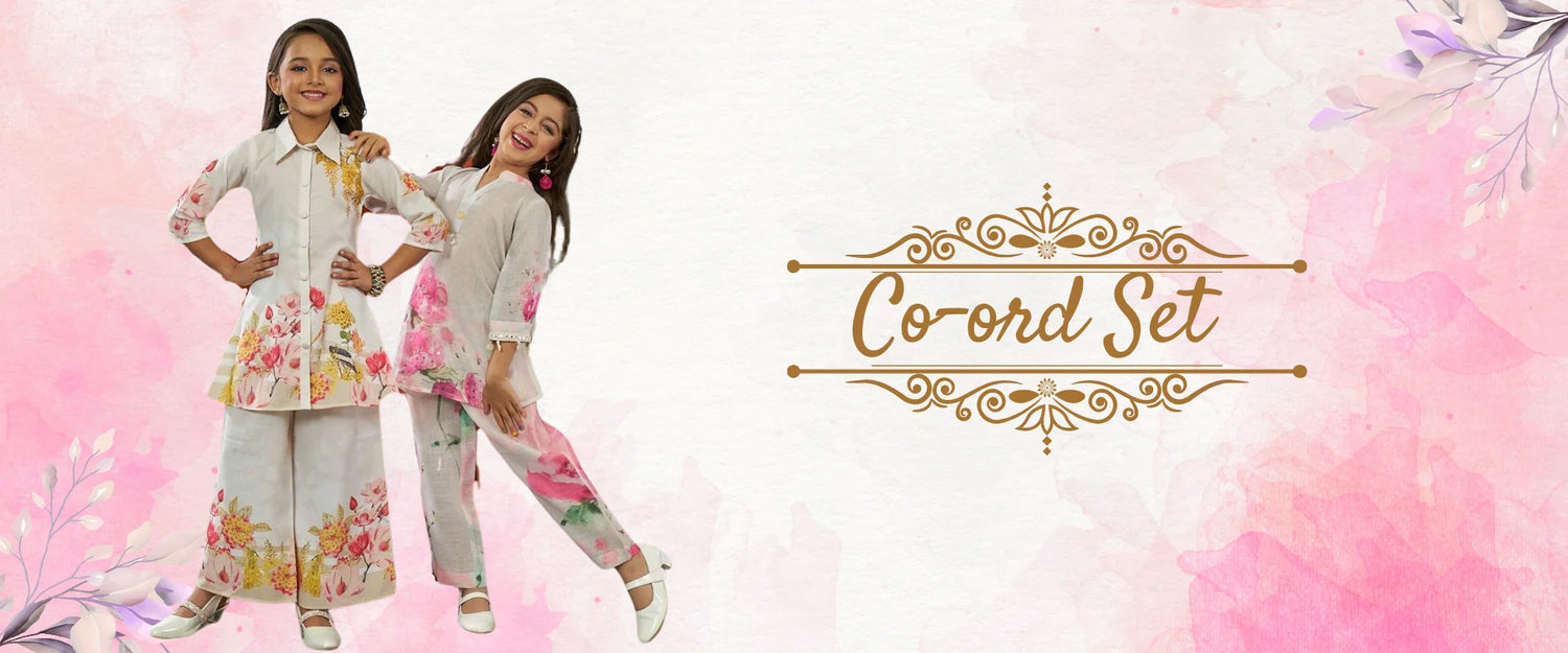 Girls Floral Printed Round Neck Three-Quarter Sleeves Top & Palazzo