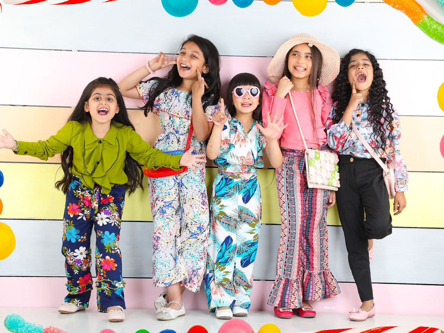 Multi Color Viscose Crepe Printed Abstract Watercolour Jumpsuit For Girls